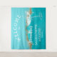 faixa de boas-vindas personalizada faixa de noiva com uma tapeçaria de festa dourada e turquesa em azul turquesa brilhante e dourado geodo gema ou ágata pedra de luxo, com um copo de cocktail é perfeito como um fundo de foto de festa de noiva. Celebre o seu chá de panela com estilo com o tema perfeito de festa de cocktail em rosa ousado, o tema perfeito para a noiva vintage dos anos 70 luxuosa e suas damas de honra.