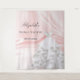 Elegante, clássico, glamoroso e estilo feminino a tapeçaria do chá de panela da noiva. Seda rosa bege, impressão de cetim como fundo. Decorado com um vestido de noiva branco. Personalize e adicione um nome e data.