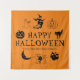 Nome personalizado Feliz do Halloween assustador decorações de tapeçaria preto e laranja com texto personalizável jack ou lanterna, abóbora, bruxa, fantasma, crânio, lua, gato preto