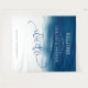 Convite de casamento com onda de aquarela azul e "nós fazemos" em uma fonte cursiva.