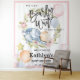 Mal podemos esperar pelo ursinho Teddy Menino Urso de pelúcia Chá de Bebê Tapeçaria de Foto. Este fofo ursinho mal pode esperar pela grande festa do bebê. Celebre a chegada iminente do seu precioso bebê com esta tapeçaria bonita e adorável. Este convite apresenta um adorável urso da floresta dormindo sonhando no balão de ar com decoração de buquê de flores lindas e estrelas douradas brilhantes, balões ao seu redor. Todos os textos estão pré-arranjados para você personalizar fácil e rapidamente com os detalhes do chá de bebê.