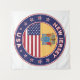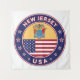 Crachá de Nova Jersey com bandeira de Nova Jersey e bandeira dos EUA cores, forma arredondada. Emblema de Nova Jersey. Selo de Nova Jersey. Coleção dos Estados Unidos.