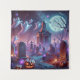 A Tapeçaria do Dia das Bruxas na Lua da meia-noite, um cemitério se mexe sob o olhar de uma lua de cheio brilhante. As figuras fantasmagóricas se movem silenciosamente acima das tombadas e cruzes, suas formas iluminadas por órbitas flutuantes que brilham como memórias perdidas. Um solene mausoléu fica à distância vigiado, coroado com uma cruz que perfura o céu noturno. Bombas esculpidas tremem de luz maliciosa, lançando sombras dançantes através do chão coberto de musgo. É um lugar onde o silêncio fala, e o véu entre mundos parece fino - assombrante, sagrado e eterno.
