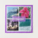 Uma impressionante colagem de fotos tirada em Oahu, Havaí, apresentando uma praia arenosa, palmeiras, um pôr de sol lavanda sobre o horizonte, e um oceano azul aqua. Por https://www.zazzle.com/store/celestesheffey #oahu