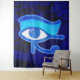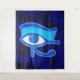 Tapeçaria com Olho de Hórus, o símbolo de proteção no Egito Antigo com design texturizado. Este design de tapeçaria apresenta o Olho de Hórus em tons azuis sobre Olhos de Hórus desbotados no fundo.