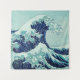 Trata-se de um desenho de ondas marítimas extremas azuis, cianas e aquamarinas com espuma e spray, baseado no trabalho de Katsushiki Hokusai (1760-1849).