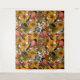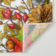 Folheto desenhado à mão, constituído por lotas, dália e flores crisântemas, bagas diversas, folhas e insetos