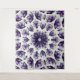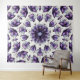 tapeçaria de mandala de flores com um padrão caleidoscópico criado de uma aquarela e desenho de tinta de uma flor de abstrato de lotus em azul, violeta e preto.
