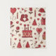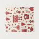 Este padrão de desenho apresenta uma variedade de elementos desenhados à mão em uma paleta quente de vermelhos e rosas suaves, incluindo:
