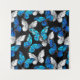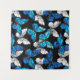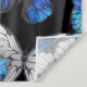 Borboletas realistas, azuis e brancas têm um padrão uniforme em fundo preto.