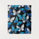 Borboletas realistas, azuis e brancas têm um padrão uniforme em fundo preto.