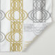 Um padrão elegante de formas geométricas de prata e ouro, ligadas em uma série de faixas lineares rendadas.
