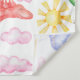 Um padrão sem costura que mostra dinossauros coloridos, arco-íris, nuvens cor-de-rosa. Isolado sobre fundo branco. Desenho manual por aquarela.