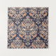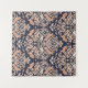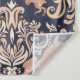 Padrão simétrico sem soldadura no estilo Damask. Lebres saltitantes, um ornamento de plantas em tons de bege em um fundo azul escuro.