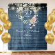 Com rosas em aguarela delicadas, grinalda de rosas florais e luzes de corda bonitas em um fundo de painéis de madeira azul, este painel de fundo rústico para cabine de fotos de aniversário de casamento de 50 anos dourados adicionará diversão e memórias ao seu evento de celebração. Projetado por Thisisnotme©