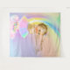 Painel de fundo de banner de chuveiro de bebê arco-íris com adorável bebê menina loira vestindo tutu arco-íris em um fundo pastel arco-íris. Este adorável painel de fundo de banner de chuveiro de bebê arco-íris é facilmente personalizado com o texto de sua escolha.