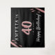 Painel de Fundo de festa de 40 anos elegante em rosa e preto. O design é em cores rosa, branco e preto com listras de aquarela rosa. Use os tapetes como pano de fundo para a festa de 40 anos para uma mulher. Personalize com o seu nome, data e idade.