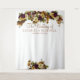 Painel de fundo personalizado para cabine de fotos de casamento de casal elegante com flores de tons burgundy, laranja enferrujado e creme marfim com folhagens e folhas verdes. Fácil de personalizar com o título, nome e data do seu evento.
