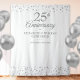 Com delicado confete de corações prateados, este painel de fundo para cabine de fotos de aniversário de 25 anos de casamento irá adicionar diversão e memórias ao seu evento de celebração. Projetado por Thisisnotme©