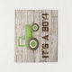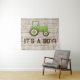 O painel de fundo para chá de bebê fazenda apresenta um trator verde com um fundo de madeira rústica. Este painel de fundo para chá de bebê é facilmente personalizado para o seu evento adicionando texto.