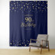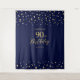 Este tapete moderno é perfeito para uma festa de aniversário de azul marinho e dourado chique. Seus convidados vão adorar tirar uma foto com este cenário sofisticado e lembrar do seu dia especial. O design apresenta tipografia dourada "Aniversário de 90 Anos" e um fundo de confetes hexagonais. Você pode personalizar o nome e a data do evento. Convites e suprimentos para festa combinando estão disponíveis na minha loja BaraBomDesign. Obrigado!