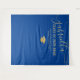Bandeira de tecido para festa de formatura Azul e Dourado ou tapeçaria de fundo para cabine de fotos para o graduado do ensino médio ou faculdade apresenta uma elegante e moderna caligrafia em negrito sem serifa "Turma de 2025" em um modelo minimalista azul e dourado com um acento de confete dourado brilhante. Insira o texto do ano da turma e personalize com o nome dela, escola e honrarias ou outros detalhes para parabenizar seu graduado trabalhador.