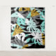 Palmeiras tropicais num padrão geométrico moderno. Fundo das cinzas escuras, com cobertura de triângulos verde branco e amarelo.