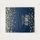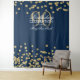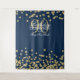 Elegante Festa de 90 Anos "Pano de Fundo para Fotografia" Dourado Azul Brilho Confetes.