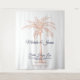 Personalize este lindo pano de fundo para cabine de fotos de casamento tropical em azul marinho e dourado rosa com seu toque especial. Esta bela tapeçaria apresenta os nomes dos noivos, data do casamento e as palavras "Fé, Esperança, Amor, mas o maior deles é o amor. 1 Coríntios 13:13" em tipografia de letra moderna. Se precisar de ajuda ou itens correspondentes, por favor entre em contato.