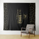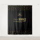 Esta tapeçaria moderna é perfeita para uma festa de reunião de turma com tema de cores preto e dourado. Um cenário de foto personalizado e elegante para lembrar seu dia especial. O design apresenta tipografia dourada "Volte Sempre!" com fundo de confetes. Você pode personalizar o ano de formatura, nome da escola e data do evento.