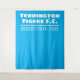 Para uma Noite de Apresentação de Equipe Esportiva ou Noite de Troféus de Clube de Futebol. Um pano de fundo pendurado nas cores do clube e com o nome da equipe esportiva ou clube de futebol. Pano de fundo fotográfico para noite de premiação de equipe esportiva. Azul claro e branco. Azul celeste.