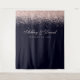 Pano de Fundo de Casamento de Cabine de Foto Azul-Marinho com Confete em Rose Gold. Bela e simples elegância vintage com confete em rose gold contra um fundo azul-marinho. Este design moderno personalizado pode ser facilmente personalizado com seus próprios detalhes.