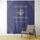Pano de fundo de cabine de fotos de casamento de âncora dourada azul náutico