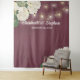 Modelos de Pano de Fundo de Cabine de Fotos de Casamento - Elegantes Hortênsias em Aquarela Branca e Luzes de Corda em Fundo Vermelho Borgonha.