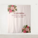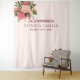 Pano de fundo de cabine de fotos de quinceañera com buquês de flores cor-de-rosa coral e folhagem verde. Fácil de personalizar com seu nome e data!