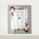 Lindo, elegante e moderno, este pano de fundo para fotos de casamento apresenta um fundo azul desbotado em aquarela e elementos botânicos florais rosa bege e borgonha marsala cuidadosamente digitalizados e pintados à mão. Parte de um conjunto correspondente. Direitos autorais Elegant Invites, todos os direitos reservados.
