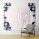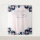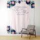 Tapeçaria de casamento elegante para o seu casamento, chá de noiva ou aniversário de casamento para usar como um enfeite de parede, sinal de boas-vindas ou fundo de cabine de fotos, por exemplo. O design tem rosas azuis reais e corais, folhagens, folhas de eucalipto. O design é feito à mão com floreios de coração com "a grama é mais verde com você" e o modelo está configurado para você adicionar seus nomes e a data.