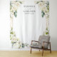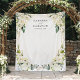 Pano de Fundo Floral Branco com Folhagem Geométrica para Fotobooth de Casamento.