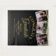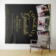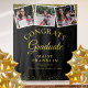 Um elegante pano de fundo para cabine de fotos de formatura apresentando 3 fotos especiais do formando, nome e detalhes da formatura em tipografia sofisticada sobre um fundo preto e dourado brilhante. Criado por Thisisnotme©