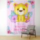 Decore sua festa de bebê temática leopardo da selva com esta tapeçaria de fundo de foto extra grande. Esta tapeçaria é perfeita para tirar fotos na frente e apresenta um desenho de um adorável bebê leopardo, flores tropicais de hibisco e folhas de monstera da floresta tropical e folhagens. Este pano de fundo para fotos de festa de bebê é personalizável e permite que você personalize o texto! Adicione seu próprio nome e data!