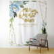 Pano de Fundo Floral Azul Poeirento com Folha Dourada para Quinceanera