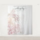 Pano de Fundo Floral Rosa Po dusty para Fotografia de Casamento. Para pendurar no seu casamento para que os convidados e vocês mesmos tirem fotos divertidas durante a festa noturna ou para o photobooth do dia do casamento. Um design moderno com um delicado buquê de flores rosa po dusty à esquerda e matizado ao fundo, desaparecendo em direção ao centro. Personalize facilmente o texto no topo com os seus próprios detalhes.