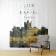 Este pano de fundo fotográfico de casamento com flores silvestres em aquarela e tema de castelo pode ser personalizado com suas informações em tipografia moderna. Desenhado por Thisisnotme©