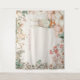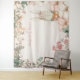 Este design tem charme de estilo vintage com um coelhinho fofo em rosa com flores na cabeça espiando por trás de uma borda floral em creme e rosa com folhagens. Prático como fundo para fotos ou cabine de fotos, ou para um fundo virtual. A obra de arte funcionará em qualquer uma das opções de tamanho de paisagem retangular (mas não no tamanho quadrado de 57 x 57 polegadas). Você pode personalizar facilmente o texto com seus próprios detalhes ou excluir o texto, se preferir.