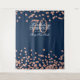 Elegante "Pano de fundo para cabine de fotos" para festa de 70º aniversário rosa dourado e confete azul marinho brilhante