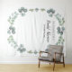 Pano de fundo personalizado para fotos de chá de noiva com coroa de folhas de eucalipto e grafismo elegante rústico chique