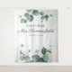 Pano de Fundo para Cabine de Fotos Futuro Sra Eucalipto. Ótima decoração de parede para festas e banner para um chá de noiva moderno e botânico. Apresenta folhagens de eucalipto com fundo em aquarela cor de rosa. Altere facilmente os detalhes clicando no botão "Personalizar" acima.