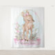 Pano de fundo para chá de bebê de menina com cervo de bebê adorável com laço rosa em um lindo fundo floral pastel. Você pode adicionar o texto de sua escolha. Este pano de fundo para chá de bebê de cervo é facilmente personalizado com o nome do bebê ou outro texto e pode ser usado como decoração no berçário após o seu evento.