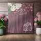 Modelos de Pano de Fundo para Cabine de Fotos de Chá de Noiva / Celebração de Casamento - Rótulo Elegante, Jarras de Mason, Flores de Hydrangea e Luzes de Corda em Fundo de Linho Floral Vermelho Borgonha.