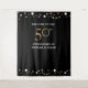 Celebre o 50º aniversário de casamento dourado com este letreiro de boas-vindas que também serve como pano de fundo para cabine de fotos. Um design de confetes dourados e pretos para destacar esse marco.